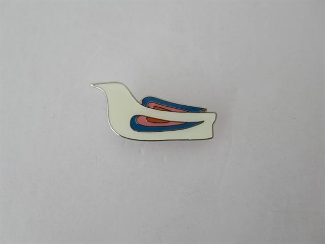 デザイン:mina perhonenのmorning portトリブローチです。カラーはベースが白で羽に青、ピンク、オレンジのラインが入っています。