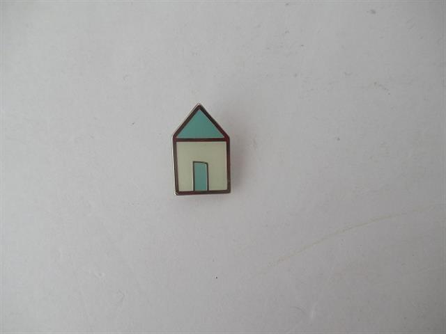 デザイン:mina perhonenのhutte ピンブローチです。カラーは白×エメラルドグリーンで家の形をしたデザインです。