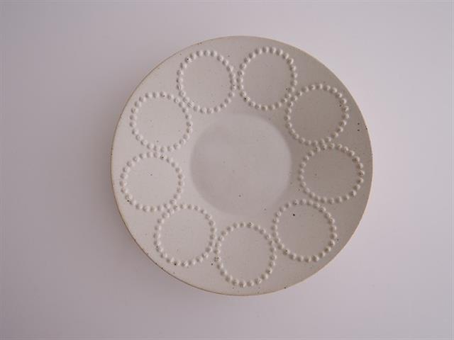 デザイン:mina perhonenのtambourineプレート小 ホワイトです。カラーはホワイトで凹凸のあるtambourineの模様が施されたデザインです。