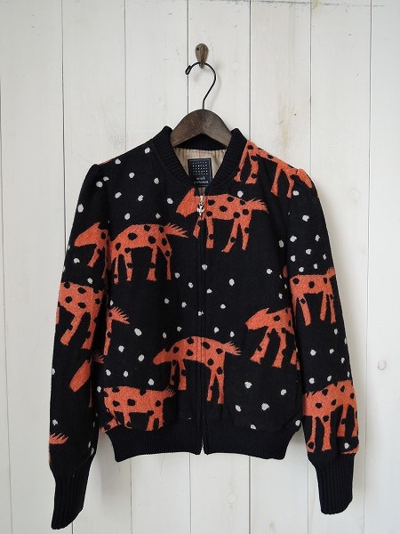 デザイン:mina perhonen「caravan」の総柄ジャケットです。カラーはネイビーベースにオレンジ・ホワイトなどの総柄で、毛羽立ちのある素材であしらわれております。ジッパー開閉で、衿、袖口、裾はリブ素材になっております。両腰ポケット&裏地付きです。 (掲載写真は、実商品のカラーにできるだけ近づけるよう努力はしておりますが、お使いのモニターや画面設定等によっては、色が異なって見える場合もございますので、予めご了承下さい)