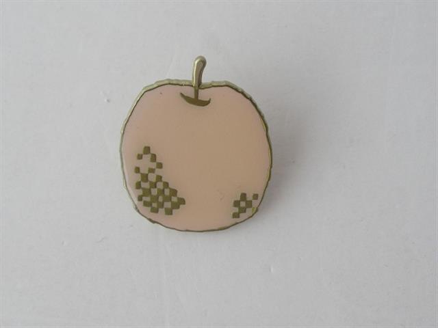 デザイン:mina perhonenのmelaピンブローチです。カラーはライトピンクベージュ系でりんごモチーフのデザインです。