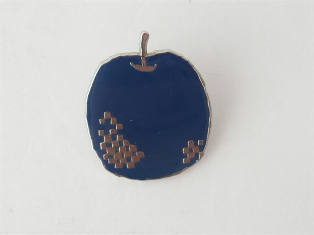 デザイン:mina perhonenのmelaピンブローチです。カラーはネイビーでりんごモチーフのデザインです。