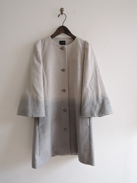 デザイン:mina perhonen「cloud land」のモヘヤ混グラデーションコートです。カラーはグレーのグラデーションデザインで、起毛素材であしらわれております。ボタン開閉で、袖はケープのように広がったデザインになっており、両腰ポケット&裏地付きです。¥110,000+taxの商品です。 (掲載写真は、実商品のカラーにできるだけ近づけるよう努力はしておりますが、お使いのモニターや画面設定等によっては、色が異なって見える場合もございますので、予めご了承下さい)
