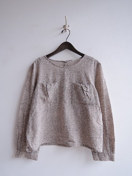 デザイン:mina perhonen 「moss」の背開きプリントシャツです。カラーはライトグレー×チャコールグレーで、総柄プリントのカシミヤやシルク混の薄手生地であしらわれております。背ボタン開閉で着脱でき、両胸にパッチポケット付きです。(掲載写真は、実商品のカラーにできるだけ近づけるよう努力はしておりますが、お使いのモニターや画面設定等によっては、色が異なって見える場合もございますので、予めご了承下さい)