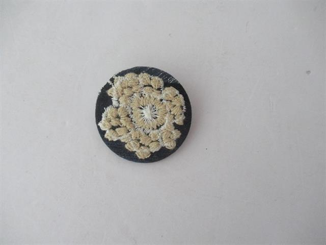 デザイン:mina perhonenのお花刺繍ブローチです。カラーは濃いネイビー地にベージュ、白のお花の刺繍デザインです。