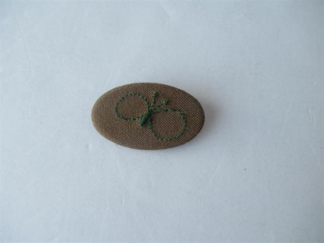 デザイン:mina perhonenのchouchoブローチです。カラーは茶×グリーンでちょうちょの刺繍のデザインです。