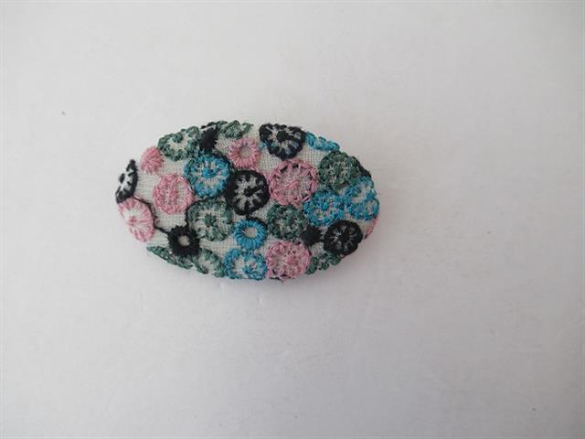 デザイン:mina perhonenのskyfulブローチです。カラーはグレー、ピンク、黒、グリーンの刺繍デザインです。