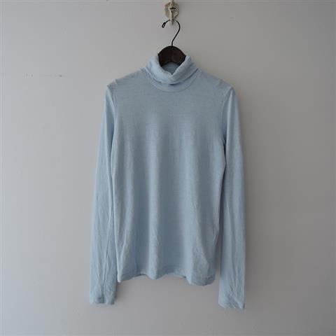 デザイン:mina perhonenのcozyタートルネックカットソーです。カラーはライトブルーで、ふんわりとした風合いを大切に織られた、アンゴラ100%のカットソー素材であしらわれています。