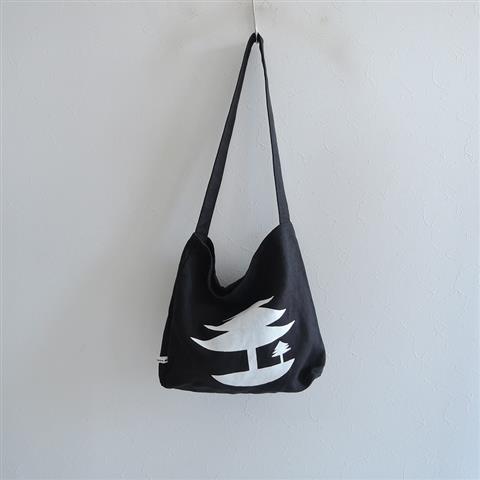 カラーはブラックで、木がヨットの帆になって、森の中に浮かぶ様子を描いたテキスタイル「mori-no-umi」が使用されています。