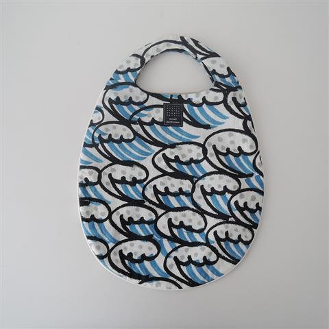 カラーは「nami」のテキスタイルで、ふち周りにホワイトのパイピングが施され、光沢のあるベージュの裏地付きです。