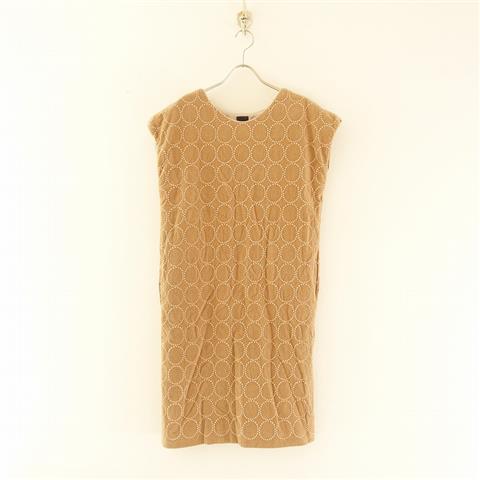 デザイン:mina perhonenのtambourine パイル刺繍スリーブレスワンピースです。カラーはベージュのベロアのようなパイル生地に、ピンクベージュのテキスタイル刺繍があしらわれております。フレンチスリーブデザインで、両腰にシームポケットが付いております。