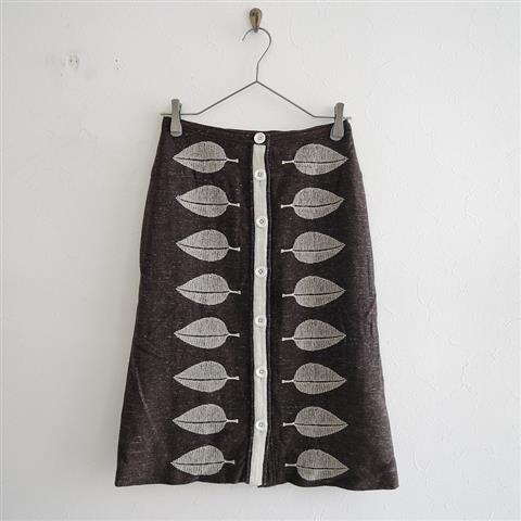 デザイン:mina perhonen「happa」のシルクウールスカートです。カラーはブラウンミックスで、フロントボタン開閉です。ポケット・裏地はございません。