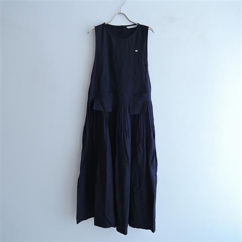 デザイン:mina perhonenのdew berry リネンプリーツドレスワンピースです。カラーはネイビーで、リネン特有の張りのある薄手生地で仕立てられております。ウエスト切替下は細かなプリーツが施されており、フロント両サイドに後付けのポケットがあしらわれております。バック襟元のボタン&左腰ファスナー開閉で着脱でき、本体価格は58,000円(税抜き)です。