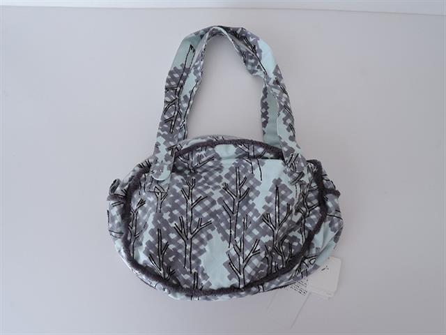 デザイン:mina perhonenのnorth forest クラウドバッグです。カラーはライトブルーベースにダークグレー・ブラックでプリントが施されており、サイド周りはダークグレーの毛足の長いボアのパイピングがあしらわれております。開口部はジッパーで、内側はブラウンの別地に切り替えられ、オープンポケット×2付きです。素材は表地が綿65%,麻35%,裏地が綿100%です。定価は16800円の商品です。(掲載写真は、実商品のカラーにできるだけ近づけるよう努力はしておりますが、お使いのモニターや画面設定等によっては、色が異なって見える場合もございますので、予めご了承下さい)