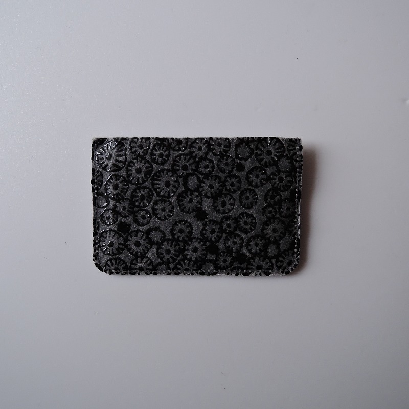 デザイン:mina perhonen×SIWAの、SIWA×URUSHIシリーズskyful パスケースです。カラーはチャコールグレーの和紙に、ブラックで小さなお花をモチーフとした絵柄が漆で描かれたデザインで、使用された素材は、ナオロンという和紙の風合いを活かしながら、革のように使い込むほどに風合いが増し、濡れても破れにくい耐久性に優れた素材になっています。