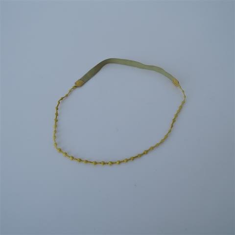 デザイン:mina perhonenの刺繍カチュームです。カラーはイエローで、繊細な刺繍モチーフが連なったデザインです。バックは光沢のあるうぐいす色のゴムに切り替えられております。