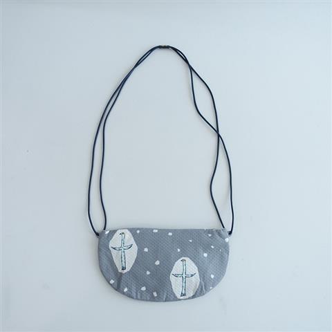 デザイン:mina perhonen×Ray BEAMSのcross bird クッペバッグです。カラーはグレーベースに、ホワイト、ネイビー、ミントなどで、開口部はファスナー開きです。持ち手はネイビーの合皮で、内側には鮮やかなライトブルーの裏地と内ポケット1つ付きです。