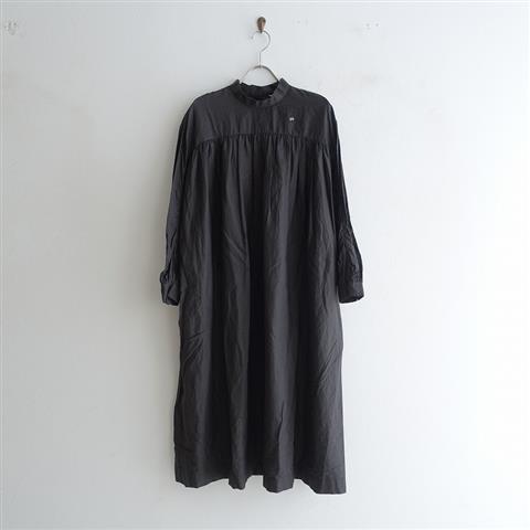 デザイン:mina perhonenのsokeriドレスです。カラーはチャコールグレーで、柔らかな薄手生地であしらわれており、バック上部&袖口ボタン開閉です。両腰辺りにポケットがあり、ゆったりしたシルエットで、左胸にちょうちょのワンポイント刺繍入りです。定価66,000円(税込み)の商品です。