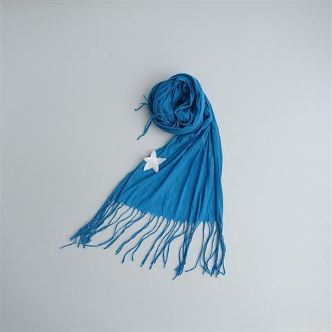 カラーはブルー系の薄手のニット生地で仕立てられており、片側サイドにホワイトのスターモチーフが施されております。