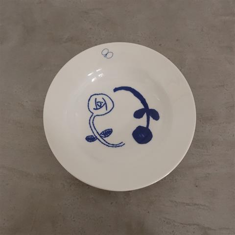 デザイン:mina perhonen×PASS THE BATON のtableware Deep Plateです。「咲いている花にただ笑ふ。」をテーマにしたミナペルホネンデザインのテーブルウェア。ホワイトベースにブルーでお花が描かれたデザインです。