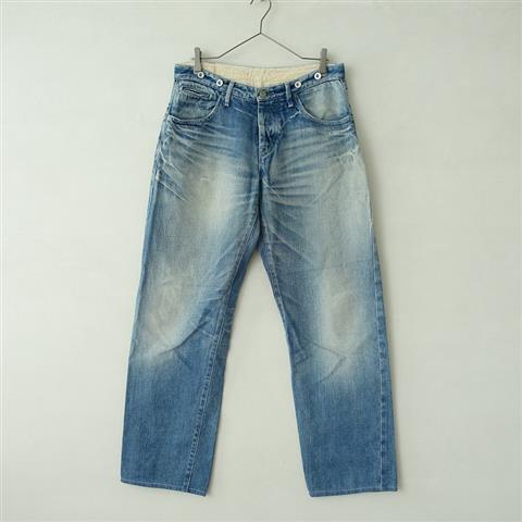 状態:ユーズドで使用感があり、ダメージ&ユーズド加工商品ですが、所々に使用による色褪せがみられ、レザーパッチに色剥げ、ヒップポケットの口が開いております。ご理解いだだける方のご購入をお待ちしております。