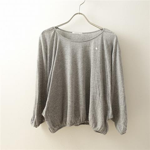デザイン:mina perhonenのgrit ドルマンニットプルオーバーです。カラーはミックスグレーで、薄手ニット地で仕立てられております。ラグランスリーブのドルマンデザインで、ホワイトのチョウチョのワンポイント刺繍があしらわれております。
