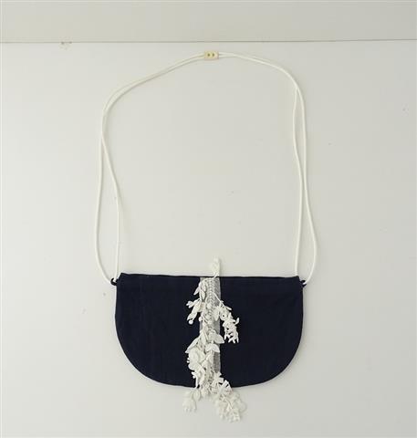 ハンドルはホワイトの合皮ひもで、開口部は小鳥の引手のファスナー仕様になっております。