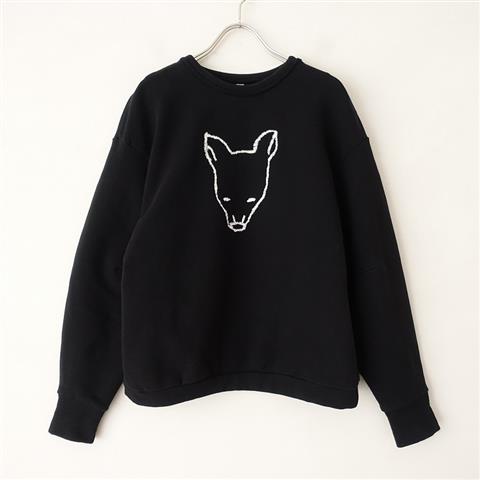 デザイン:2019-20年秋冬コレクション mina perhonen「bestie」の仔犬刺繍ストレッチスウェットプルオーバーです。カラーはブラック×ホワイトです。裏ミニパイル起毛のスウェットで、ストレッチ性がございます。オリジナルの「おっとりとした仔犬」の刺繍があしらわれております。後ろ身頃と袖後方にボリュームを持たせたデザインです。ネックラインには裏側パイル地を使用されています。ポケットはございません。定価は24,200円の商品です。
