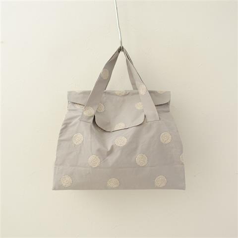 カラーはグレーです。高密度で織り上げたコットン地の「papier」テキスタイルに、「vapor」のテキスタイル刺繍があしらわれたデザインです。紙のような張りのある不思議な質感で、開口部は裁ち切り仕様で、蓋はマグホック開閉です。サイドマチにスナップボタン付きで、内側にポケットが2つ、取り外し可能な底板がございます。定価は19,800円(税込)の商品です。