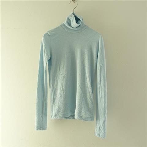 デザイン:mina perhonenのcozy アンゴラニットタートルネックカットソーです。カラーはサックスで、柔らかな手触りの薄手ニット生地で仕立てられております。シンプルなデザインのアイテムです。