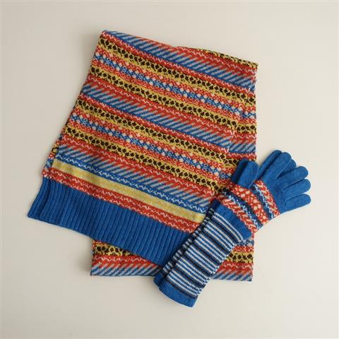 デザイン:hitomi shinoyama×mina perhonenのノルディックマフラー・ニットグローブセットです。