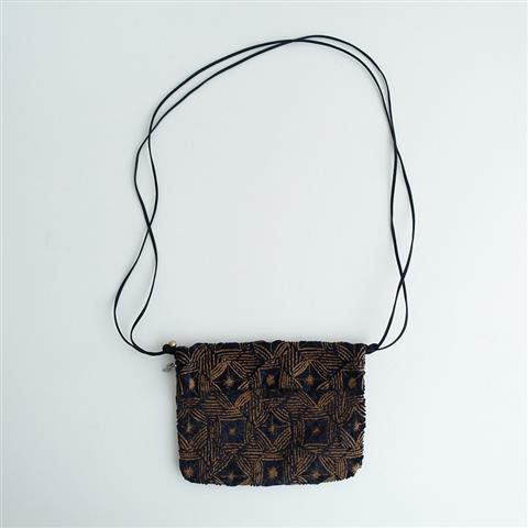 デザイン:2020-21年秋冬コレクション mina perhonenのflower circle financier bagです。カラーはダークネイビーベースに濃いベージュの総刺繍入り(ブランド表記はnavy)で、ベルベット素材です。開口部は両サイドスナップボタン留めのフラップ&内側toriファスナー開きで、ゴールドの真鍮が付いた肩紐は長さ調節可能です。内側にオープンポケットが1つあり、光沢のあるオレンジブラウンの裏地付きです。素材は、表生地がアセテート70%・綿30%、刺繍部分が(上糸)綿100%・(下糸)ポリエステル100%、裏生地が絹100%、付属が真鍮です。定価18,700円の商品です。