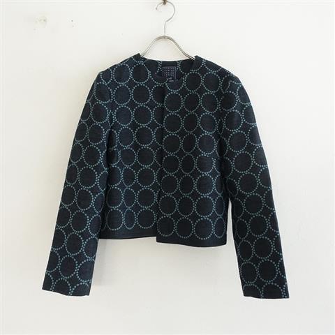 デザイン:2021年SSコレクション、mina perhonenのtambourineジャケットです。カラーはダークグレーベースにくすみグリーンのテキスタイル刺繍があしらわれており、フロントフルオープンです。右胸内側にポケットがあり、裏地付きで、定価88,000円(税込み)の商品です。