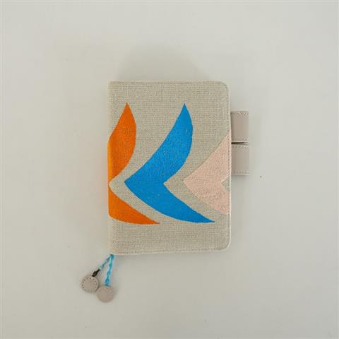 デザイン:mina perhonen×HOBONICHIのbird オリジナルサイズA6手帳カバーです。カラーはナチュラルベースで、ダークブラウン・サックス・オレンジ・ライトブルー・ライトピンクの鳥たちが一列に並ぶ刺繍があしらわれております。内側はピンクグレーの合皮&ベージュの布に切り替えられ、カードポケット×4,ポケット×4,しおりひも×2,バタフライストッパー×1付きです。