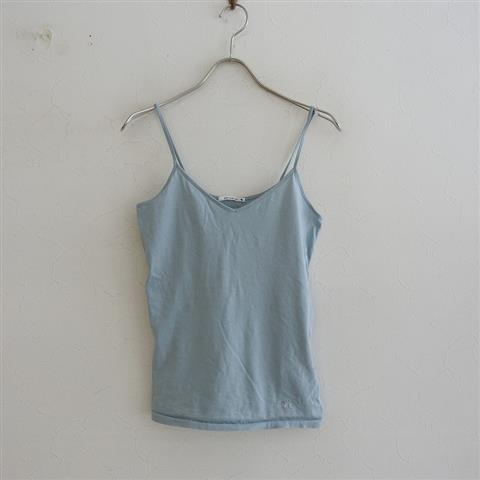 デザイン:mina perhonen「choucho」のコットンキャミソールです。カラーはライトブルーで、やや薄手の素材です。プルオーバータイプで、左裾に蝶々の刺繍が施されております。