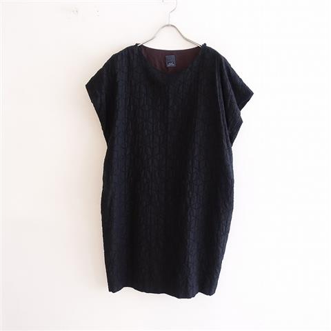 カラーはブラックベースに、ネイビーの「sugar」テキスタイル刺繍があしらわれたシルクコットンのツイル地で仕立てられています。両肩にループボタン付きのプルオーバータイプで、ボルドー系の裏地が付いております。