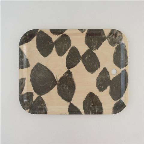 デザイン:mina perhonenのslow dance 木製トレイです。ブランド表記カラーはpink mixでblackで蝶がゆったりと舞っているデザインです。素材は表面がメラミンアルキド塗装、素地が天然木(白樺)です。