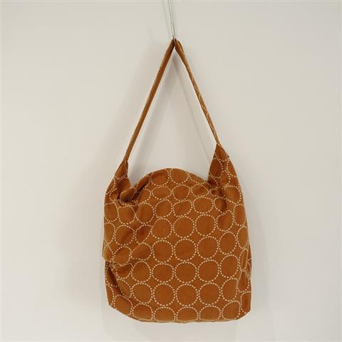 デザイン:mina perhonenのtambourineショルダーバッグ大です。カラーはライトブラウンベースにベージュでテキスタイル刺繍があしらわれており、開口部はファスナー開閉です。内側はブラウンの裏地とファスナーポケットが1つ付いています。ショルダーストラップ以外にも手から提げることのできる持ち手の付いた2way仕様で、身に着けると自然に体に沿うようサイドにタックが施されています。素材は表生地が綿75%,麻25%、刺繍部分と裏生地が綿100%です。