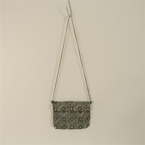 デザイン:mina perhonenのflower circleフィナンシェバッグです。カラーはくすみグリーンのベルベットベースにベージュのテキスタイル刺繍があしらわれており、開口部はスナップボタン留めのフラップ&ジッパーで、内側は光沢のあるベージュの裏地&オープンポケットが1つ付いています。合皮の肩ひもは一方の結び目を結びなおすことで長さの調節が可能で、素材は表生地がアセテート70%,綿30%、刺繍部分上糸が綿100%、刺繍部分下糸がポリエステル100%、裏生地が絹100%、付属が真鍮です。定価18,700円(税込み)の商品です。