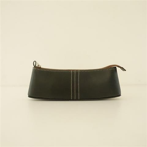 デザイン:mina perhonenのペンケースです。カラーはダークグリーンで、レザー素材です。開口部はファスナー開閉で、内側はホワイト×グリーンのチェック柄の裏地付きです。ファスナーには鳥のモチーフ付きです。