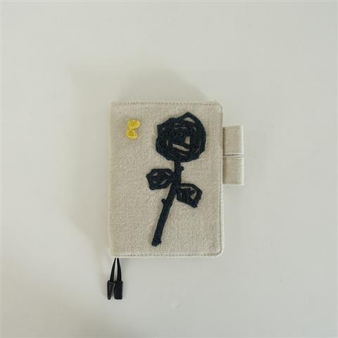 内側も同素材で仕立てられ、カードポケットが5つ、ミニポケットが2つ、オープンポケットが2つ、しおりひも×2、ペン差し(バタフライストッパー)が付いております。