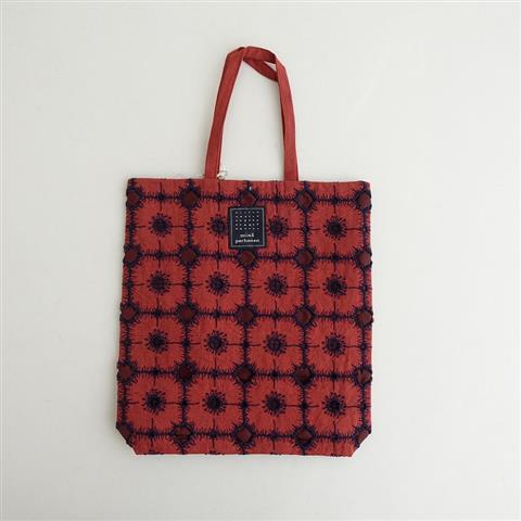 カラーはレッド×ダークネイビーの細かなチェック生地ベース(表記はred)にダークネイビーで「anemone」のテキスタイルが施されたデザインです。