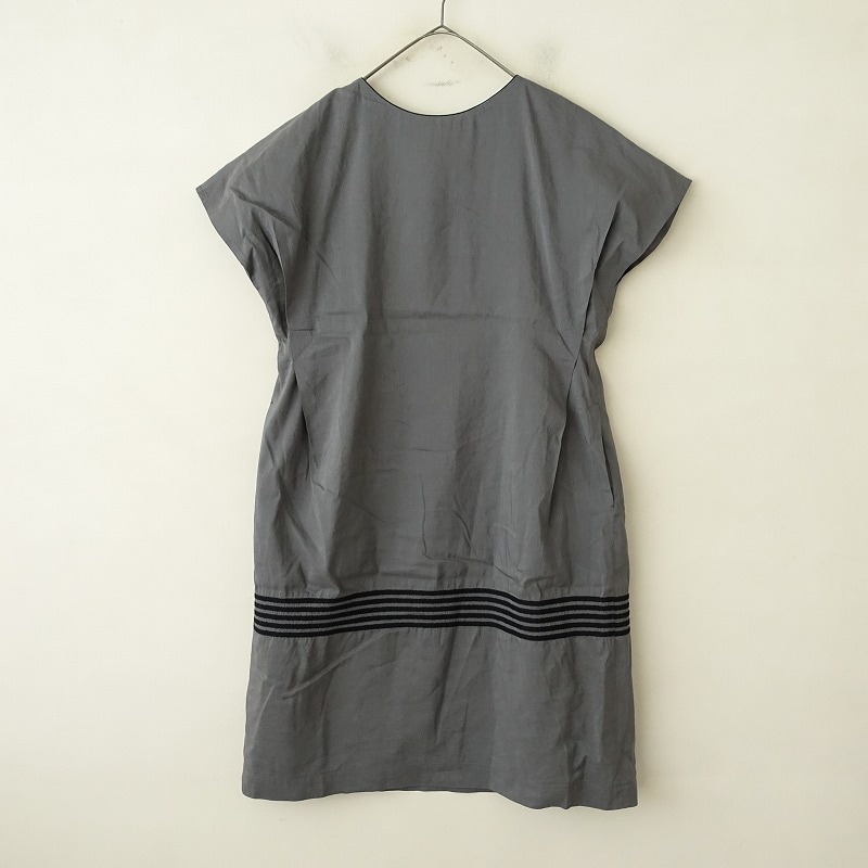 デザイン:mina perhonen galleriaのboulanger リネンシルクワンピースです。カラーはグレーで、リネンシルクの織り地で仕立てられ、裾にboulangerのテキスタイル刺しゅうがあしらわれています。裏地付きで、両サイドにシームポケット、定価(メーカー希望小売価格) 71,500円の商品です。