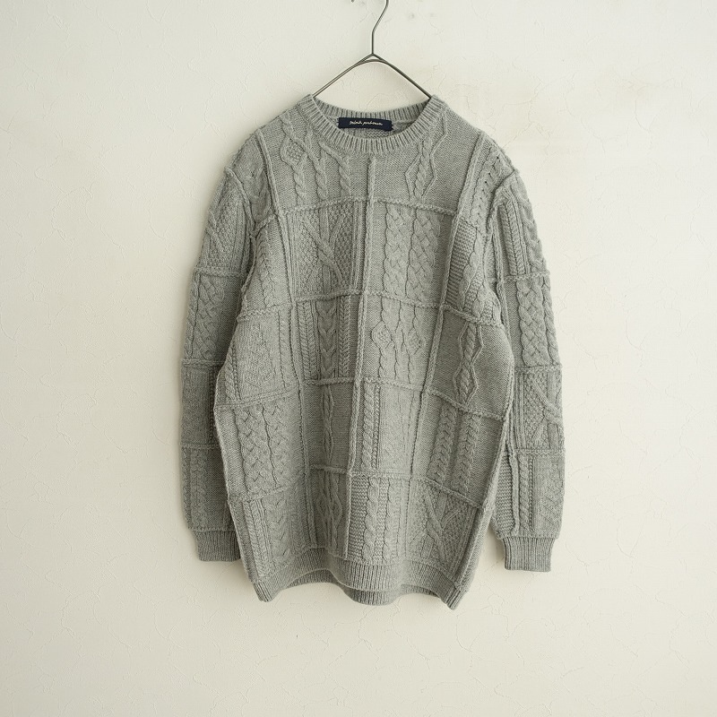 デザイン:mina perhonenのjoin ニットプルオーバーです。カラーはグレーで、様々な柄編みが施された毛アルパカ混紡の粗目ニット地です。プルオーバータイプで着脱でき、ネック・袖口・裾はリブ編みです。定価(メーカー希望小売価格)66,000円の商品です。