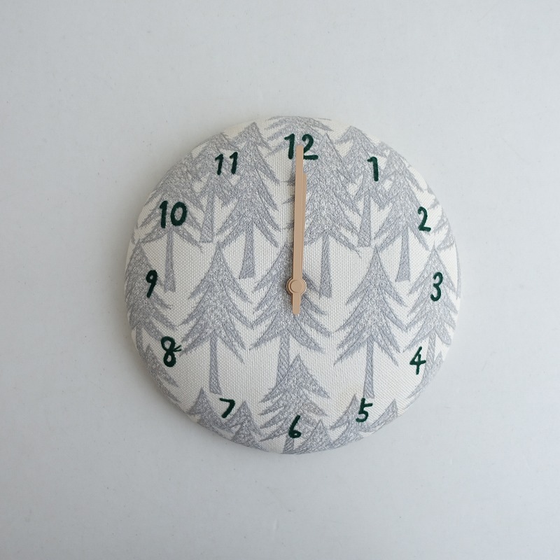 カラーなど:mina perhonenのbolo land theater 壁掛け時計です。カラーはアイボリーベースにライトグレーでテキスタイル刺しゅうがあしらわれており、数字はダークグリーンのフェルトです。定価(メーカー希望小売価格)22,000円の商品です。