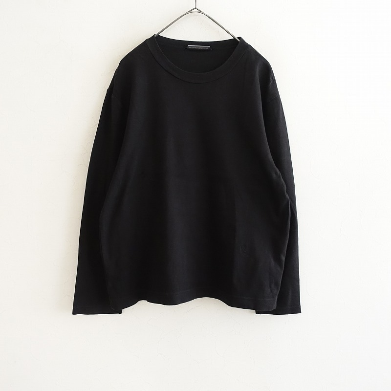 カラーなど:mina perhonenのchoucho 刺しゅうカットソーです。カラーはブラックで、蝶刺しゅうが施された天竺ニット地です。プルオーバータイプで着脱でき、襟ぐりはリブ仕様です。定価(メーカー希望小売価格)19,800円の商品です。こちらは、元々の製品に工房で染め直しを施しました。