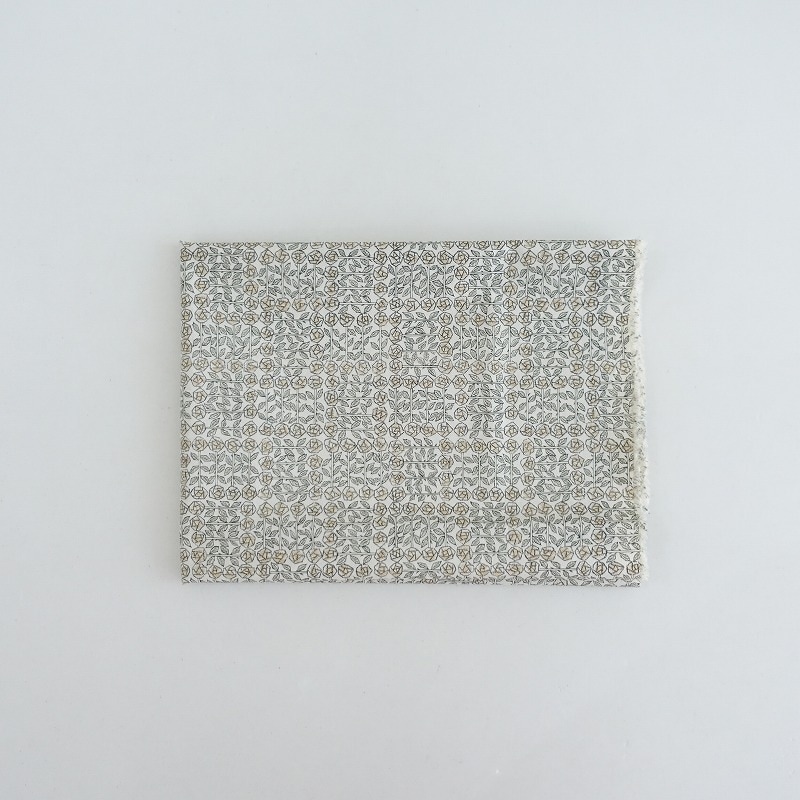 デザイン:mina perhonenのsleeping rose タナローン生地です。カラーはホワイトベースに、ベージュ、ライトグリーン系でsleeping roseの総柄プリントがあしらわれた生地です。