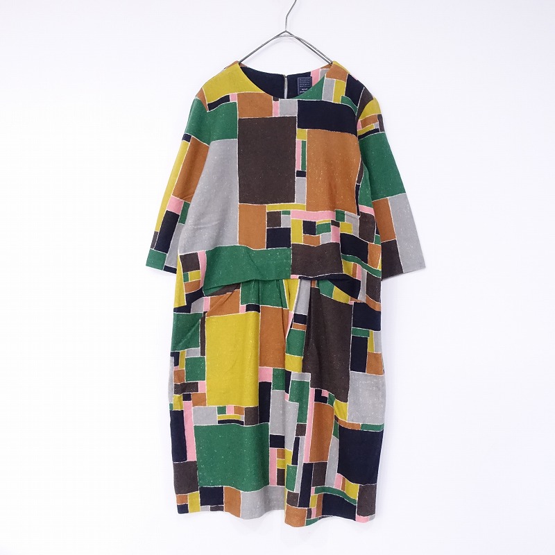 【定価6.9万】ミナペルホネン mina perhonen landscape カシミヤプリントドレスワンピース 36 (33-2502-463)【42C52】