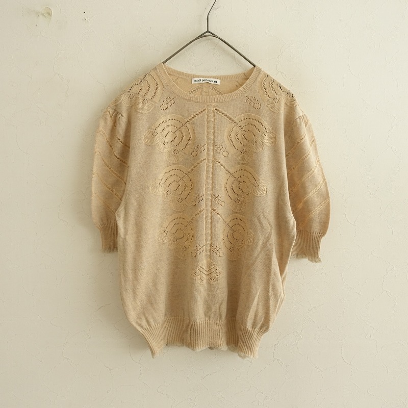 ミナペルホネン mina perhonen fossil flower 透かし編みニット半袖プルオーバー 38 (33-2508-668)【82I52】