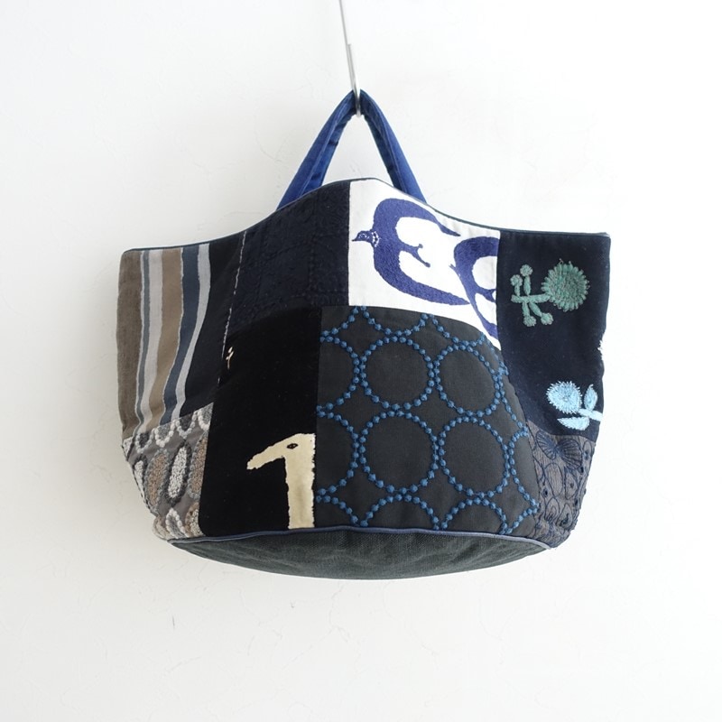大変人気のあるお品物で、パッチワークで仕立てられた収納力たっぷりのバッグです。